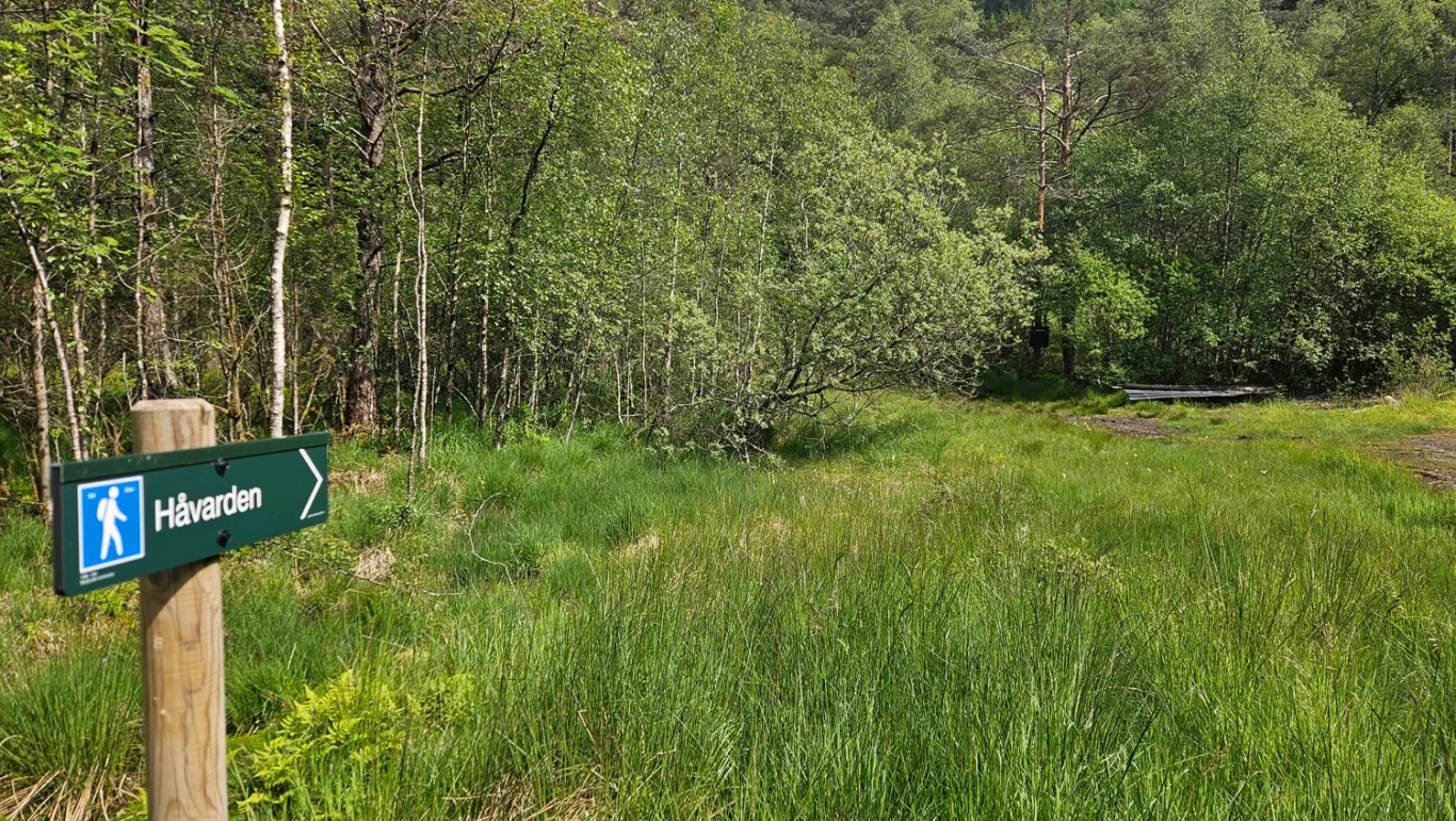 Turen starter fra hovedveien. Følg grusveien forbi gårdstunet og videre innover langs innmark og beiteområder. Gå gjennom grinden der traktorveien slutter – her finner du et skilt merket "Håvarden". Kryss trebroen og følg stien videre gjennom skogen. Den er merket med røde piler og malingsmerker på trærne. Mot slutten viser steinvarder vei mot toppen. Stien er tydelig hele veien, og varden er synlig fra god avstand. På toppen får du en flott utsikt over Austfjorden.