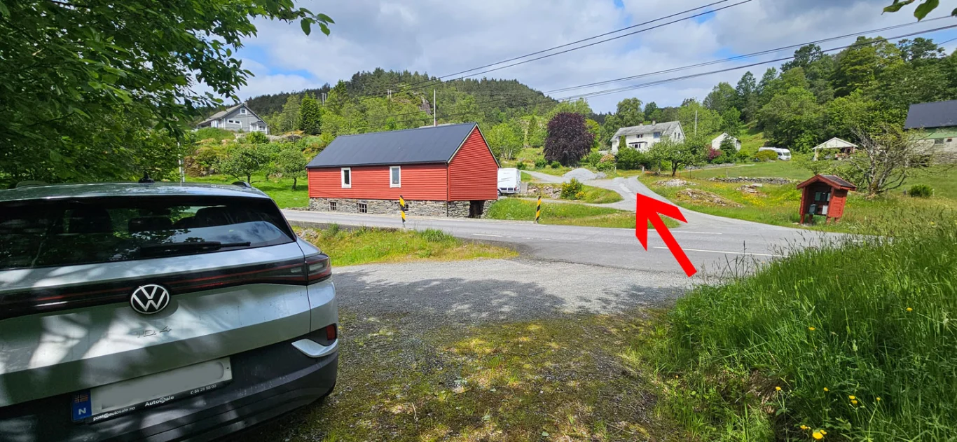 Parkering i p-lomme langs hovedveien.