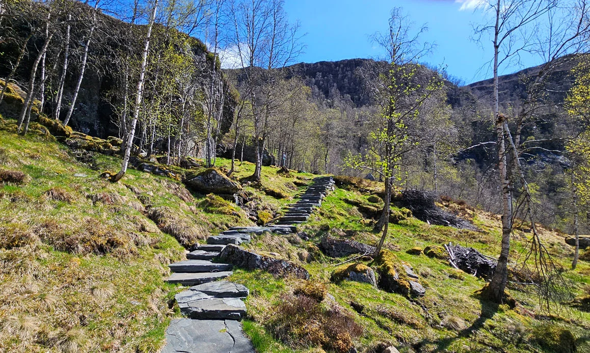 Dette trappeprosjektet, fullført i 2024, består av rundt 1000 trinn og er resultatet av flere års arbeid under krevende forhold. Steinene, noen med en vekt på opp mot ett tonn, er hentet fra nærliggende urer og nøye plassert for å sikre en trygg og varig sti.